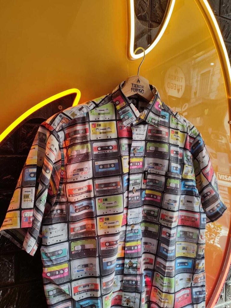 Camisa clásica confeccionada en batista estampada, con bolsillo al frente y botón de repuesto.